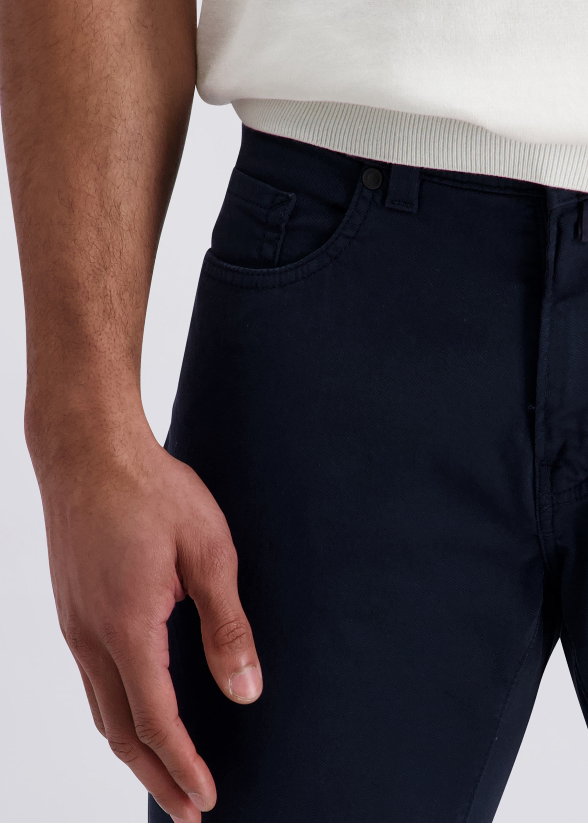 Maskuline Lässigkeit und durchdachte Funktionalität vereinen sich in der Five-Pocket-Hose Lyon zu einem stilvollen Alltagsbegleiter. Der hochwertige Baumwollmix überzeugt durch seine natürliche Weichheit und elastischen Komfort – für ein besonders angenehmes Tragegefühl. Typische Five-Pocket-Details wie aufgesetzte Gesäßtaschen, eine Coinpocket und seitliche Einschubtaschen runden das Design ab.