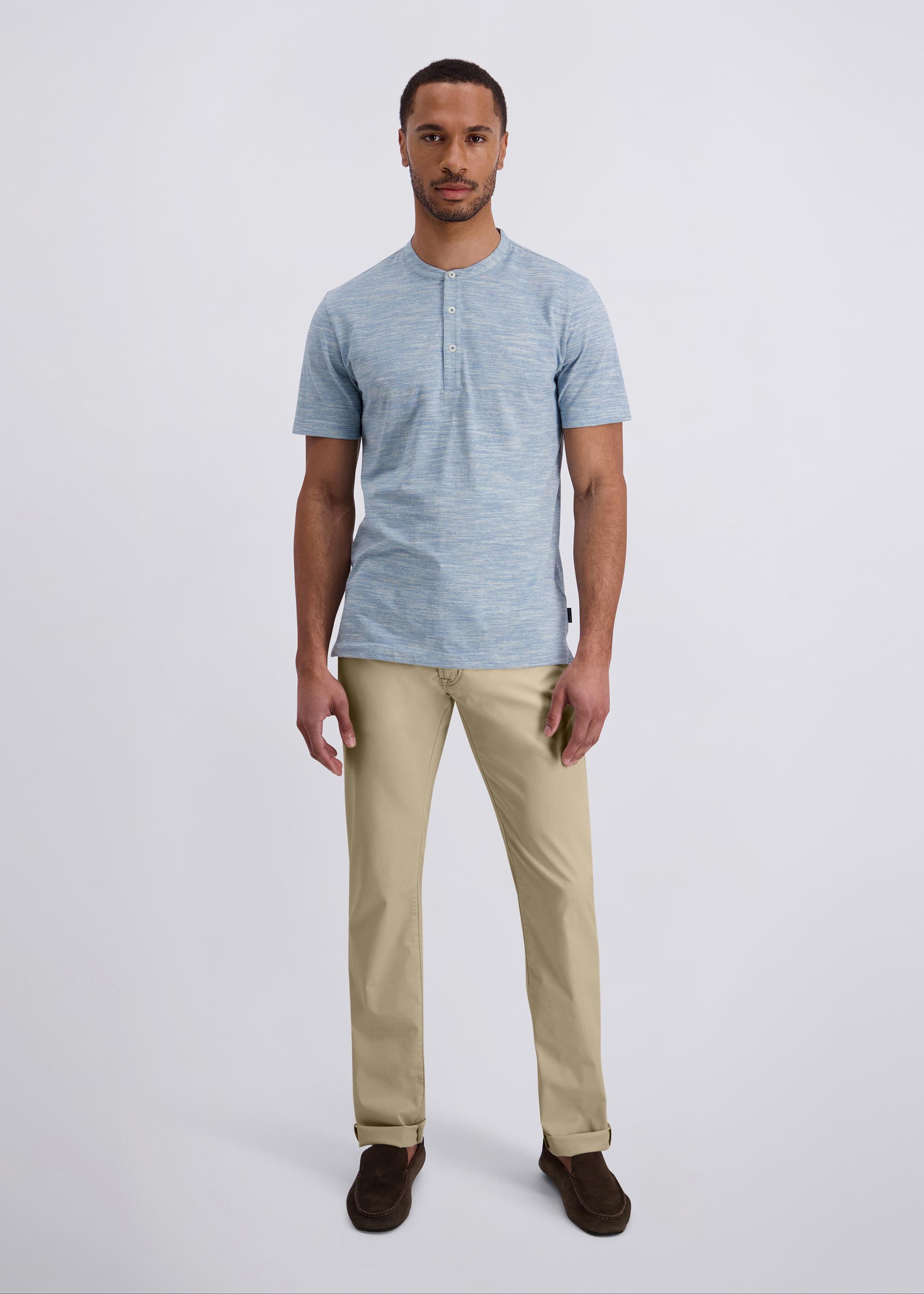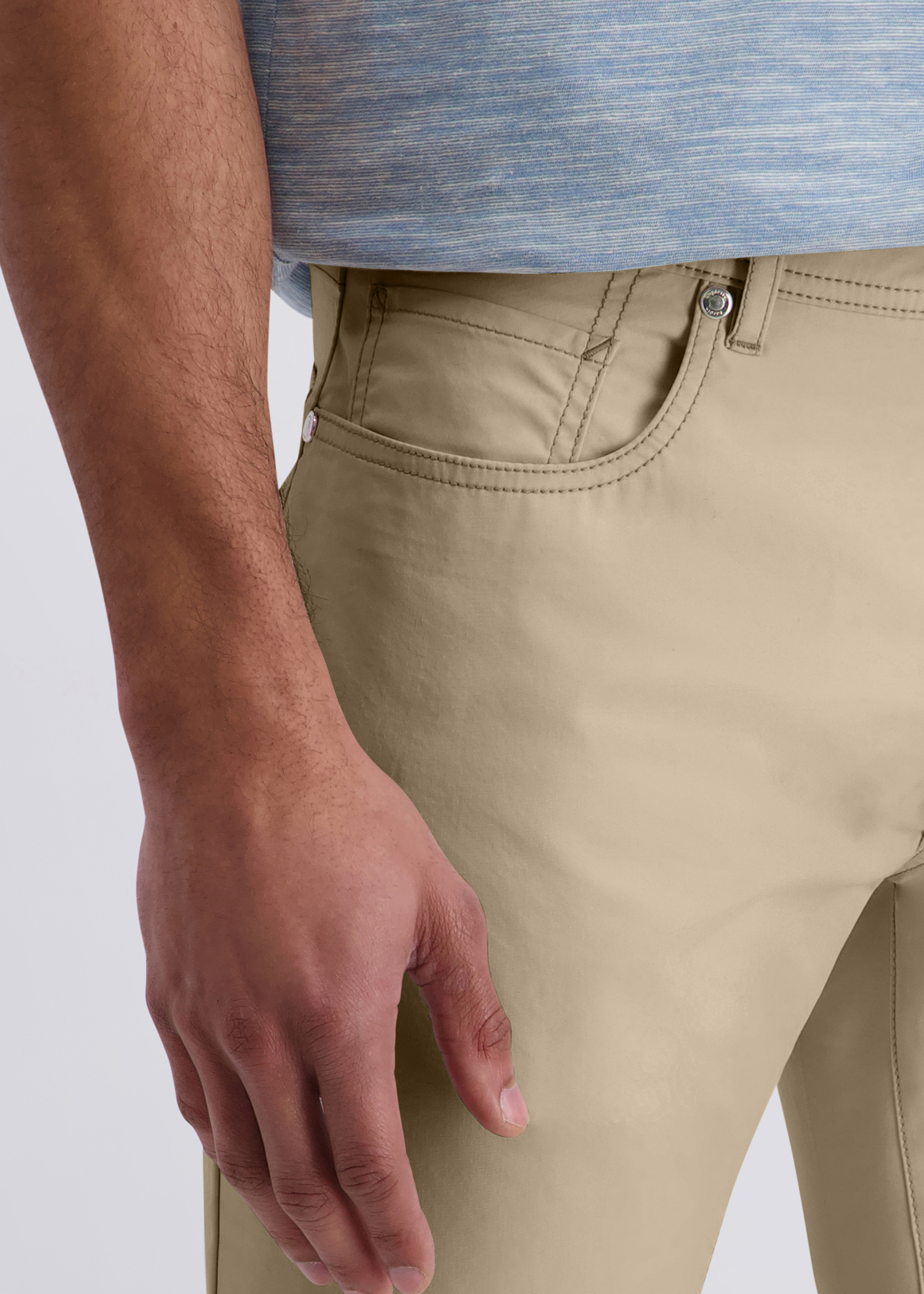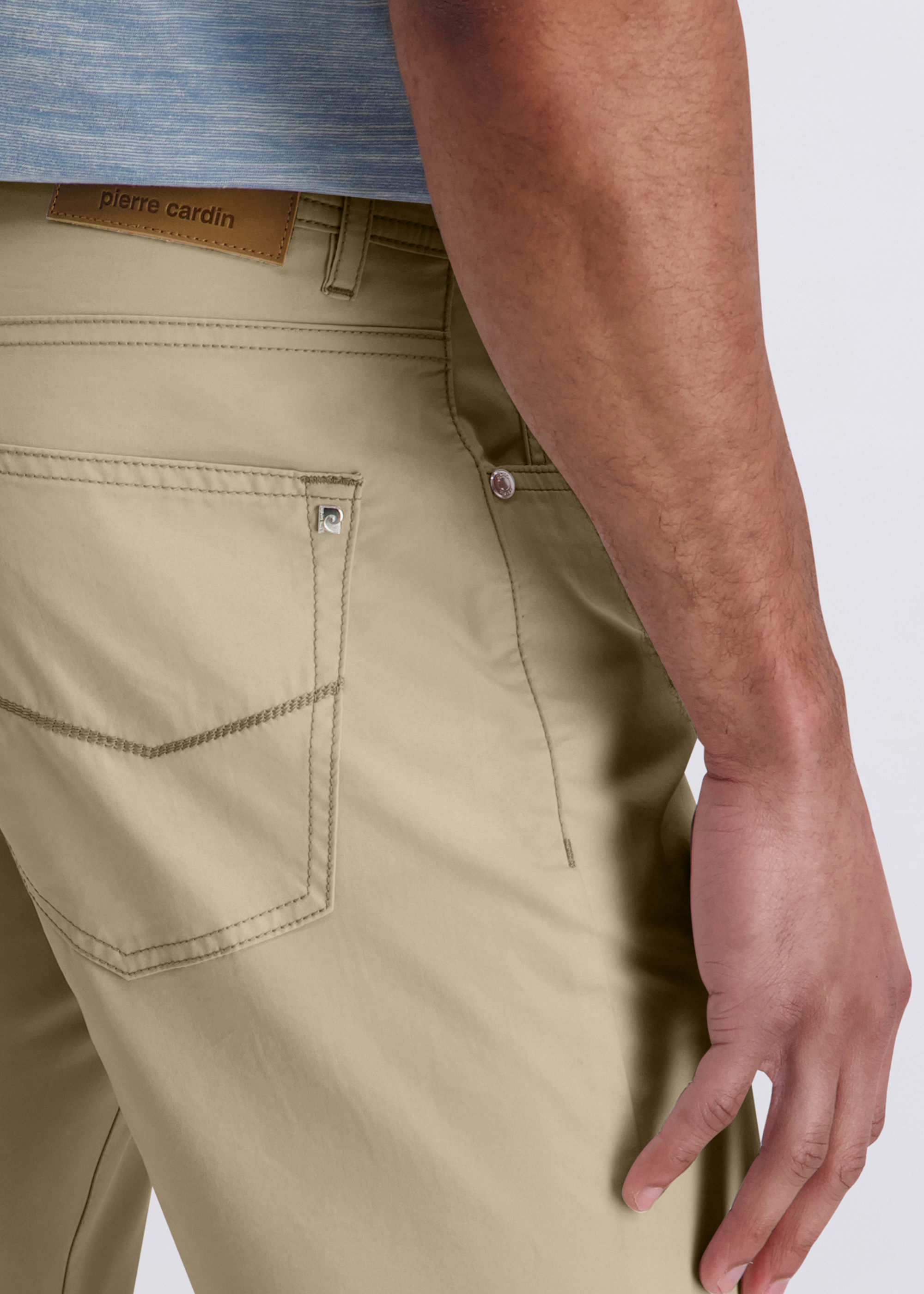 Die typische 5-Pocket-Ausstattung mit seitlichen Eingrifftaschen und praktischem Coinpocket sorgt für Funktionalität im Alltag. Eine Dornschlaufe ergänzt das Design und unterstreicht den hochwertigen, durchdachten Look. Vielseitig kombinierbar – ideal für Business-Casual, Freizeit und moderne Everyday-Outfits.