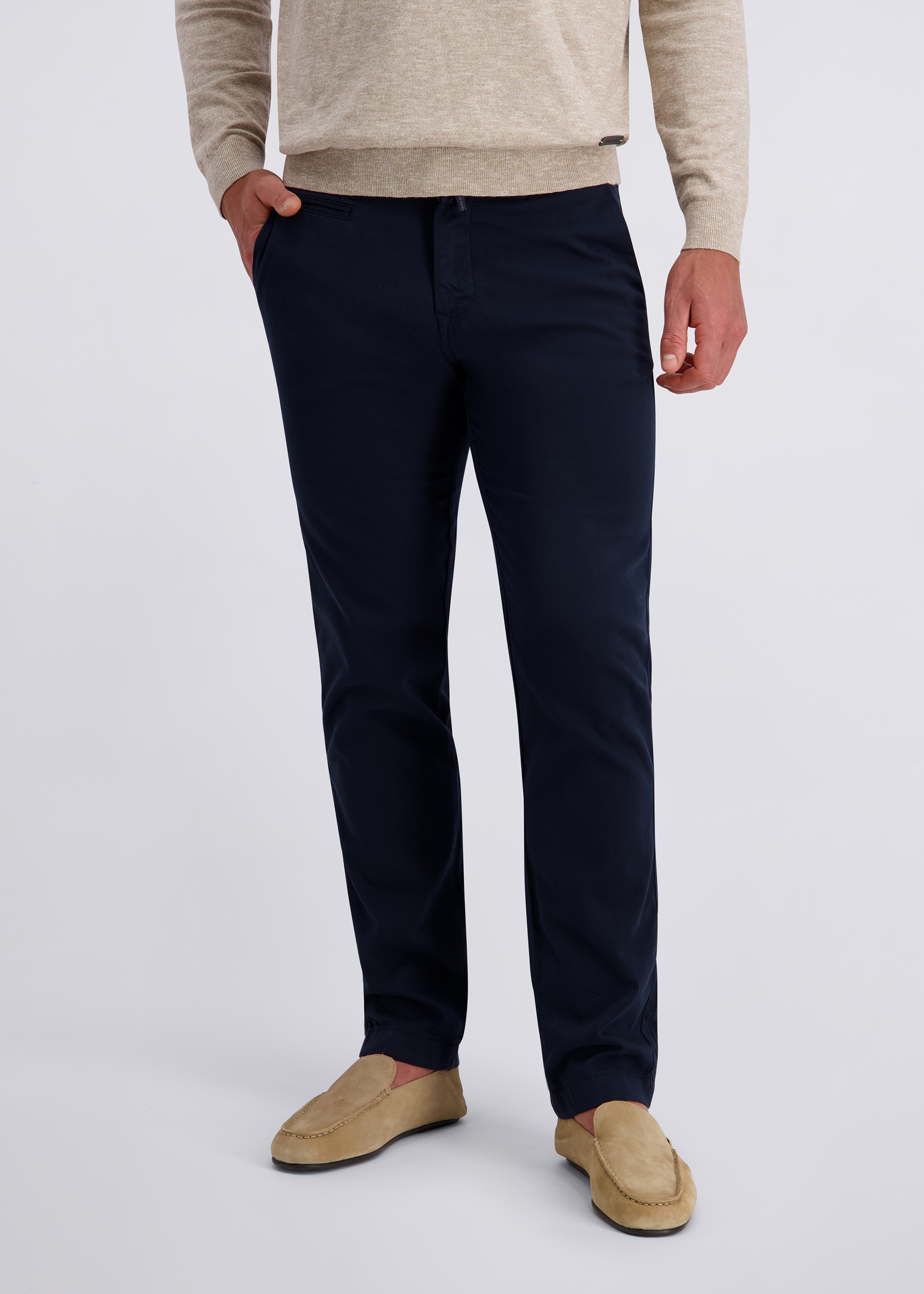 Klassische Details wie seitliche Eingrifftaschen, eine dezente Coinpocket und paspelierte Gesäßtaschen verleihen dem Modell elegante Akzente und betonen seinen modernen, smarten Charakter. Der Verschluss aus Knopf und Reißverschluss fügt sich stimmig in das Gesamtbild ein. Die charakteristische Dornschlaufe zum Fixieren der Gürtelschnalle rundet das Design ab. Ein stilvoller Allrounder im Regular Fit, der Business und Freizeit perfekt miteinander verbindet.