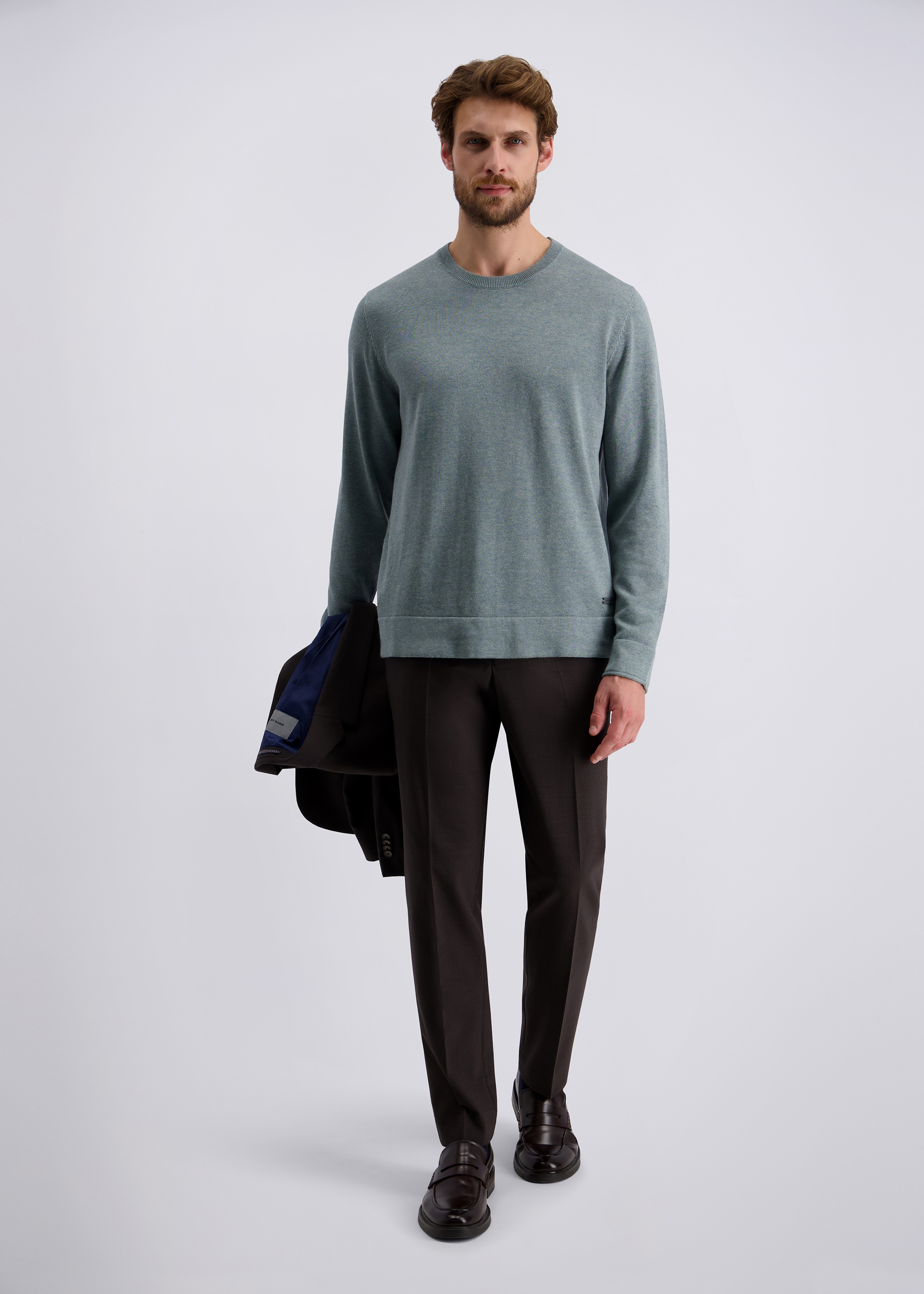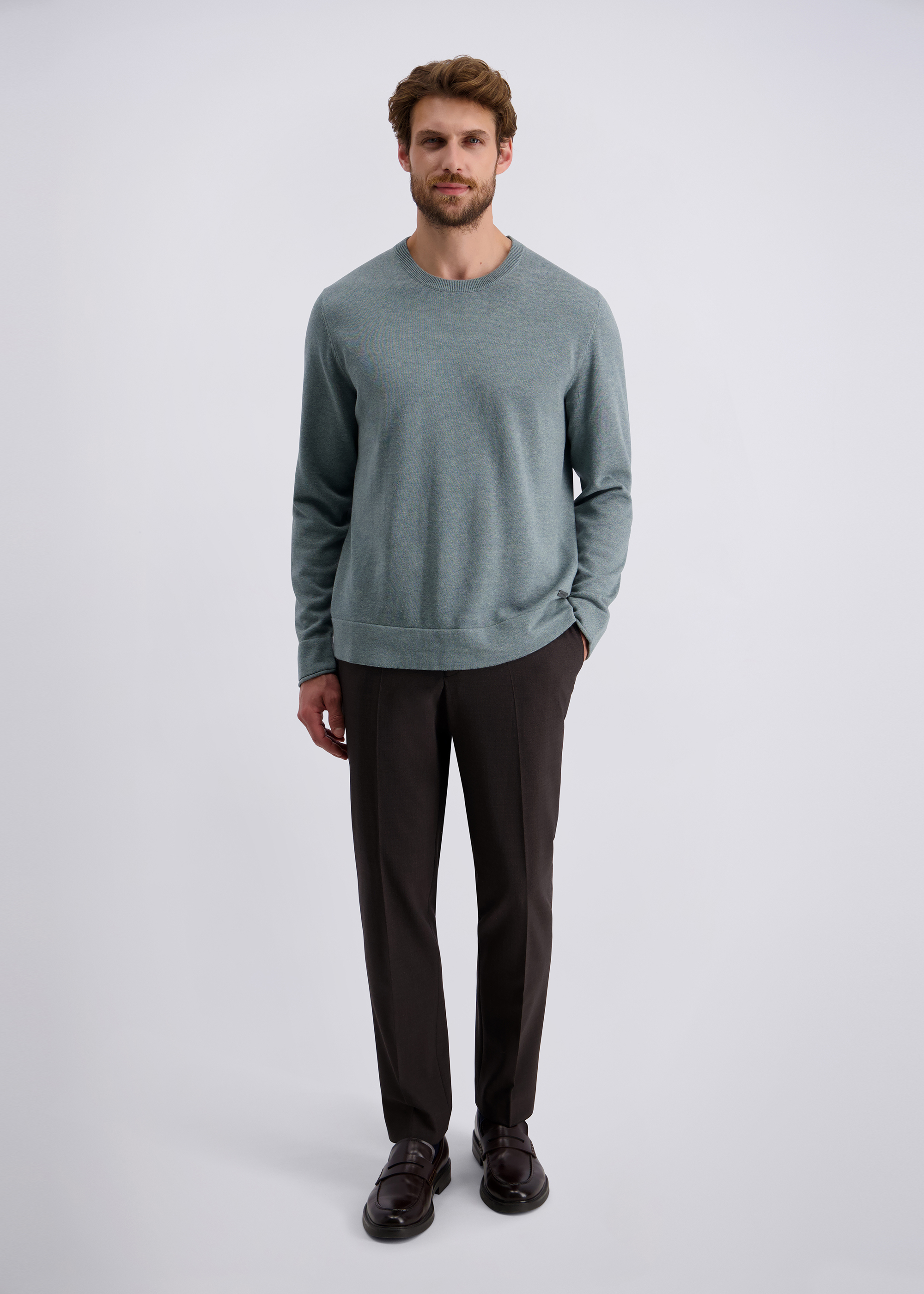 Gepflegter Casual Feinstrick in tonalem Mouliné Garn. Modern und unkompliziert, kombinierbar für viele Anlässe in Freizeit und Alltag. Sein Modern Fit bietet angenehmen Tragekomfort.