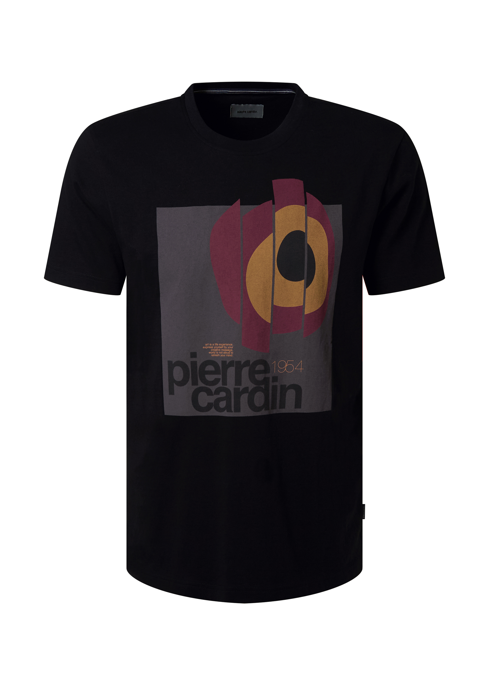 Ein klassisches Rundhals T-shirt aus hochwertigem Single Jersey mit attraktivem, mehrfarbigem Placement Print. Sein regulärer Schnitt sorgt für Komfort und passt ideal zu Jeans und Chino.
