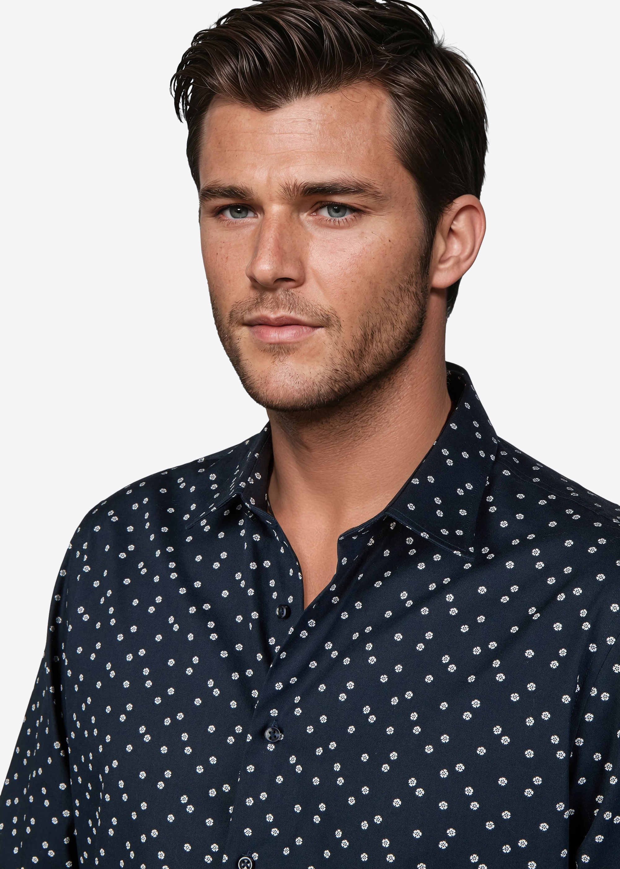 Das Hemd aus hochwertiger Baumwolle überzeugt mit einem modernen, dezenten Punktemuster, das jedem Outfit einen Hauch von Eleganz verleiht. Perfekt für formelle Anlässe oder stilvolle Freizeitaktivitäten, bietet es dank seines klassischen Schnitts und des weichen Materials höchsten Tragekomfort. Der zeitlose Kragen rundet das Design ab und macht es zu einem unverzichtbaren Begleiter in jeder Garderobe.