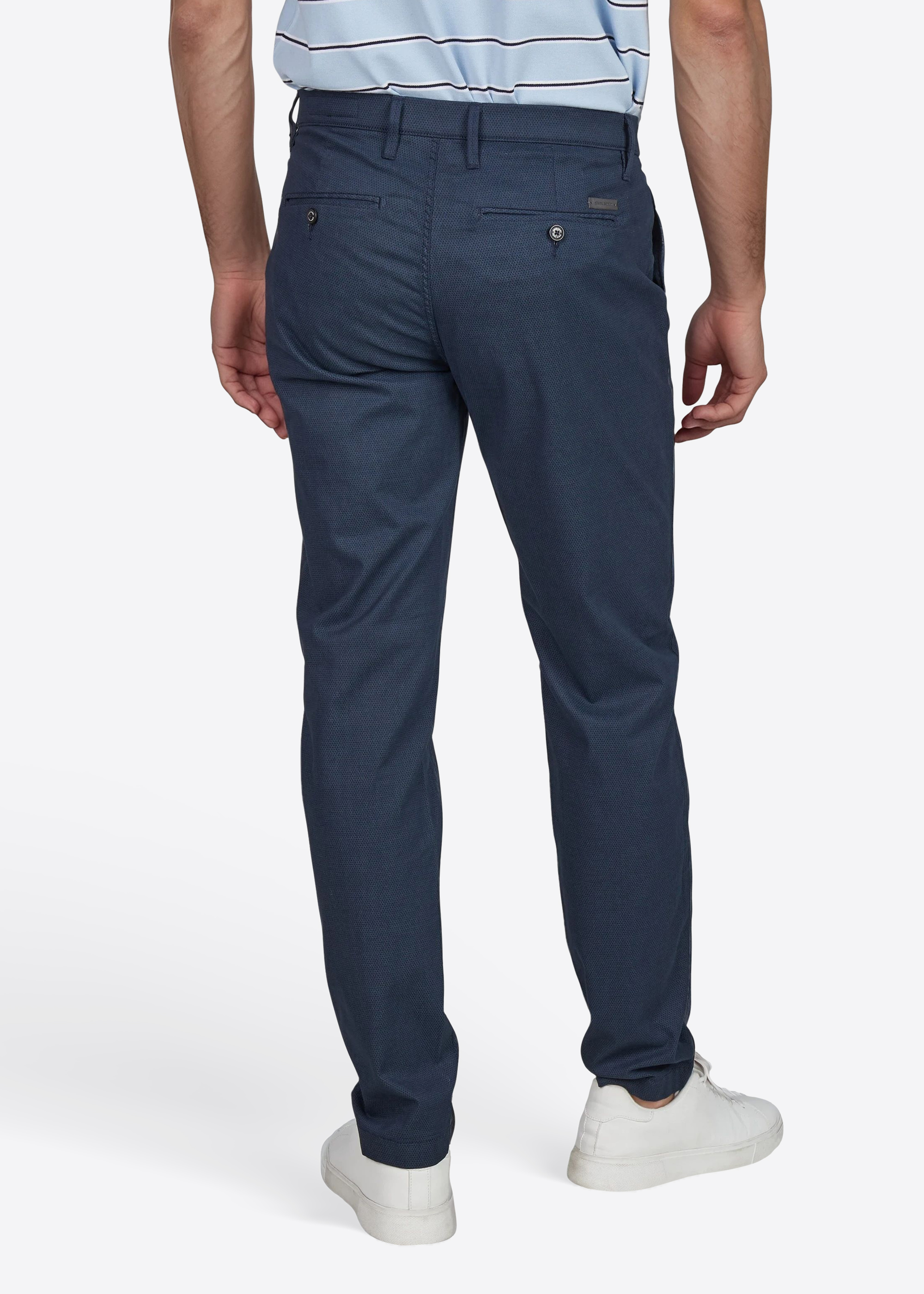 - Zwei Gesäßtaschen mit Knopf- und Paspeldetail für gepflegten Look