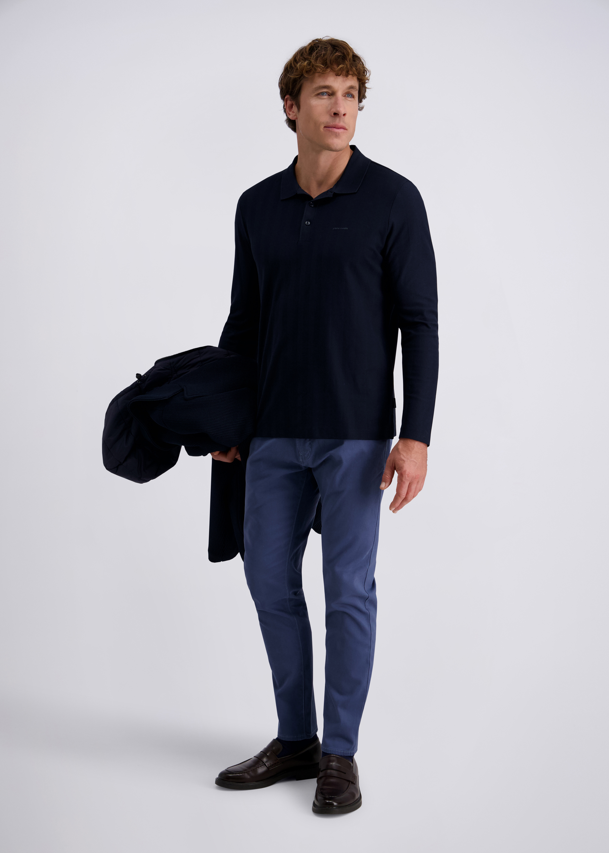 Langarm Polo-Shirt, uni strukturiert