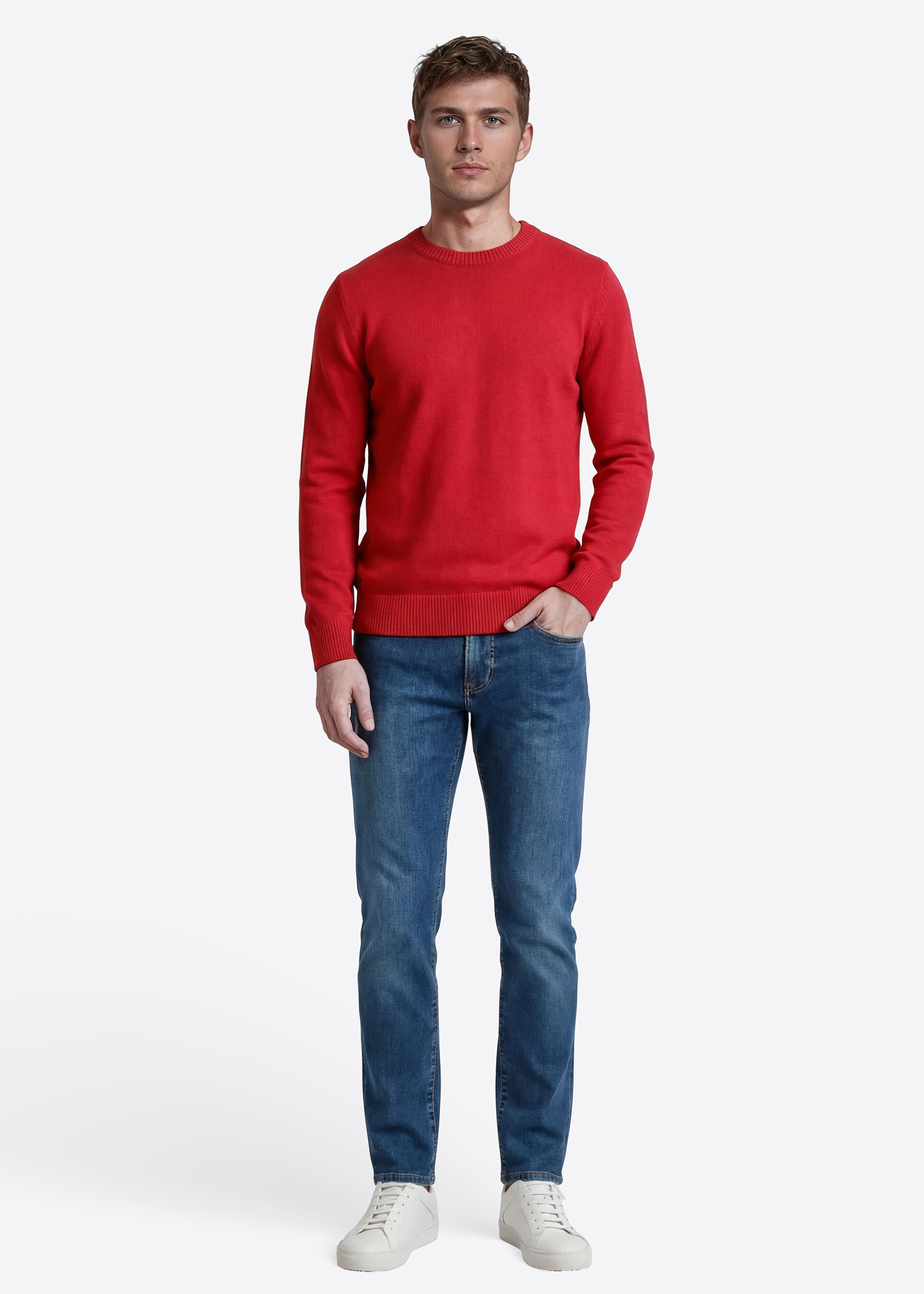 Entdecke den zeitlosen Komfort unseres Strickpullovers im Modern Fit. Der klassische Rundhalsausschnitt sorgt für einen vielseitigen Look, während die Rippbündchen an Ärmeln und Saum für eine perfekte Passform und einen modernen Akzent sorgen. Hergestellt aus einem hochwertigen Baumwollmix, bietet der Pullover ein weiches Tragegefühl und langanhaltende Qualität – ideal für den Alltag oder entspannte Stunden zu Hause.