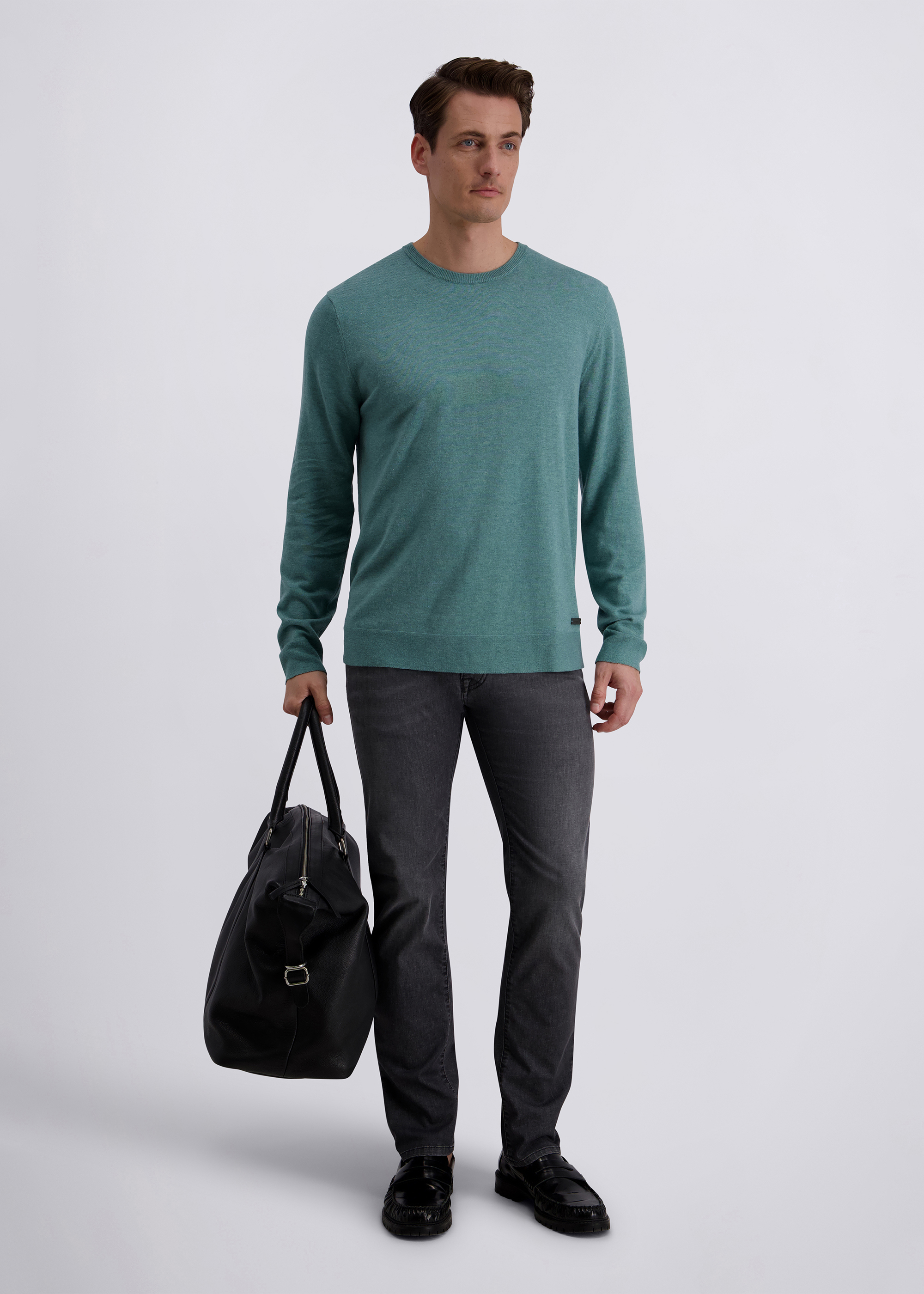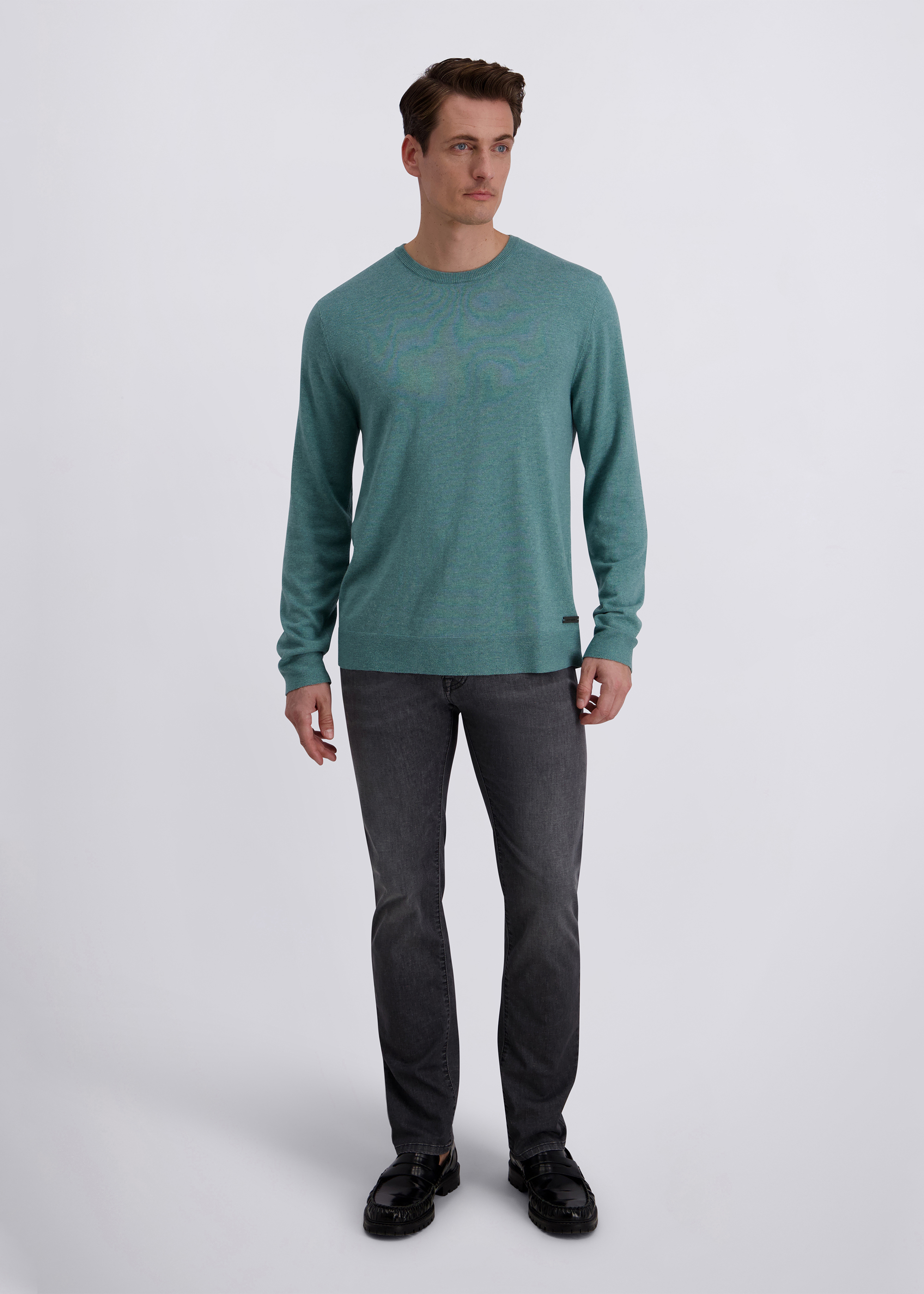 Dieser Strickpullover überzeugt mit einem modernen Fit, der eine zeitgemäße, leicht körpernahe Silhouette bietet und dennoch angenehm bequem sitzt. Der klassische Rundhalsausschnitt sorgt für einen vielseitigen Look, der sich sowohl lässig als auch smart kombinieren lässt. Feine Rippbündchen an Ärmeln und Saum gewährleisten eine optimale Passform und verleihen dem Pullover zusätzliche Formstabilität. Dank des hochwertigen Baumwollmixes trägt sich das Modell besonders weich und angenehm auf der Haut – ideal für stilvolle Outfits zu jeder Jahreszeit.