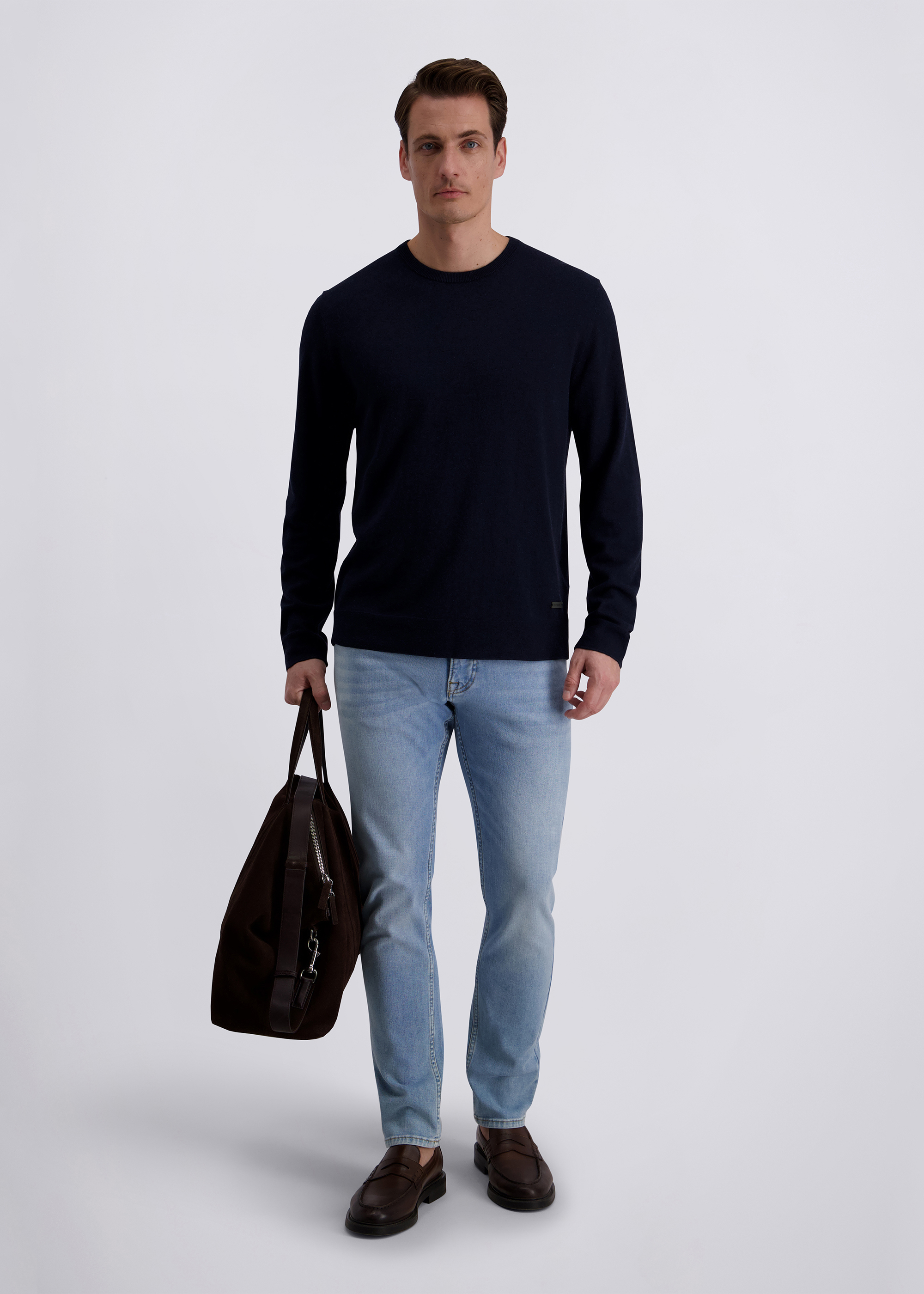 Dieser Strickpullover überzeugt mit einem modernen Fit, der eine zeitgemäße, leicht körpernahe Silhouette bietet und dennoch angenehm bequem sitzt. Der klassische Rundhalsausschnitt sorgt für einen vielseitigen Look, der sich sowohl lässig als auch smart kombinieren lässt. Feine Rippbündchen an Ärmeln und Saum gewährleisten eine optimale Passform und verleihen dem Pullover zusätzliche Formstabilität. Dank des hochwertigen Baumwollmixes trägt sich das Modell besonders weich und angenehm auf der Haut – ideal für stilvolle Outfits zu jeder Jahreszeit.