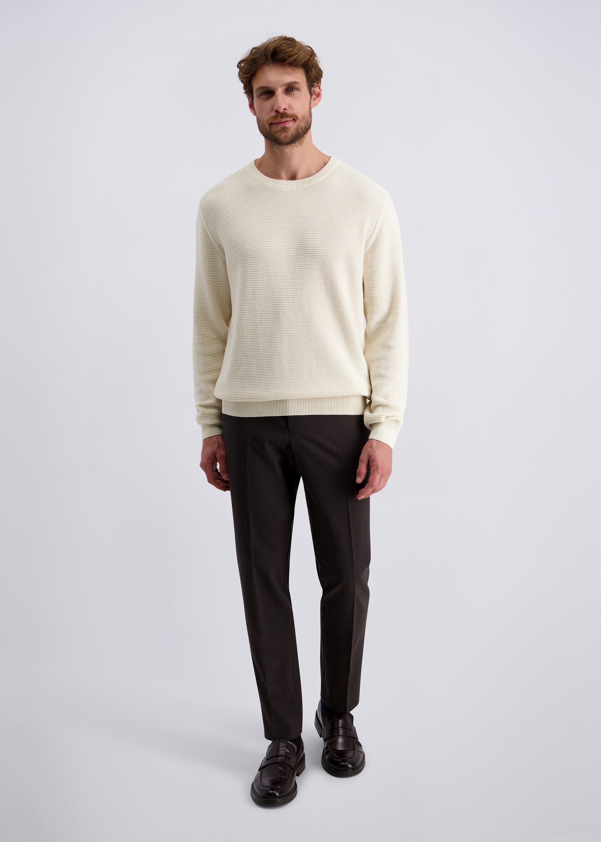 Dieser elegante Pullover vereint zeitloses Design mit hochwertiger Verarbeitung und verspricht einen stilvollen Auftritt zu jeder Gelegenheit. Gefertigt aus einer innovativer Baumwollmischung bietet er ein angenehmes Tragegefühl und sorgt durch seine weiche Textur für höchsten Komfort. Der klassische Rundhalsausschnitt und die gerippten Bündchen an Ärmeln und Saum unterstreichen die schlichte Eleganz dieses Modells und gewährleisten gleichzeitig eine optimale Passform. Die subtil strukturierte Oberfläche verleiht dem Pullover eine dezente Raffinesse und macht ihn zu einem vielseitigen Begleiter, der sowohl im Büro als auch in der Freizeit überzeugt. Ein unverzichtbares Basic, das in keiner gut sortierten Garderobe fehlen sollte.