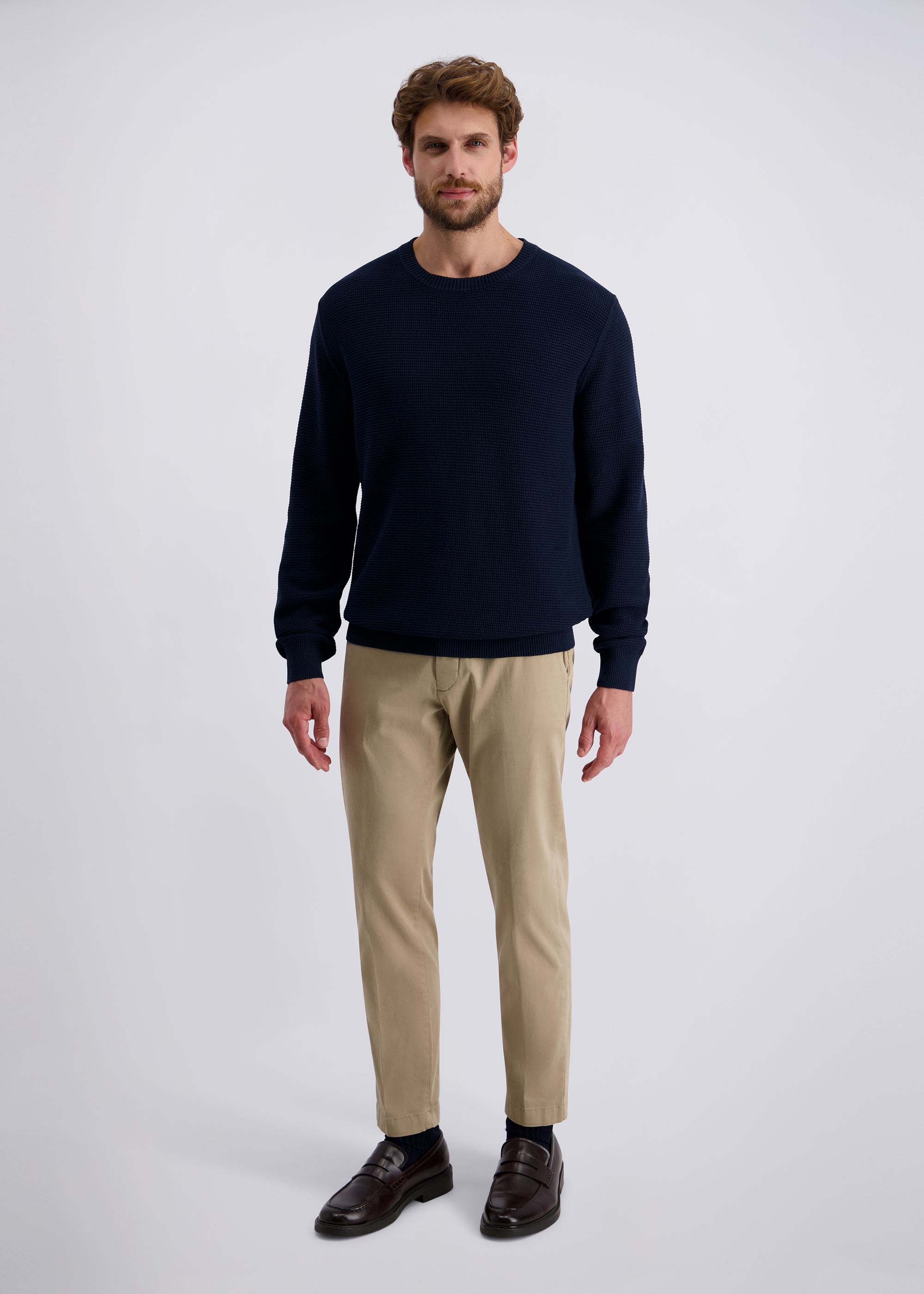 Dieser elegante Pullover vereint zeitloses Design mit hochwertiger Verarbeitung und verspricht einen stilvollen Auftritt zu jeder Gelegenheit. Gefertigt aus einer innovativer Baumwollmischung bietet er ein angenehmes Tragegefühl und sorgt durch seine weiche Textur für höchsten Komfort. Der klassische Rundhalsausschnitt und die gerippten Bündchen an Ärmeln und Saum unterstreichen die schlichte Eleganz dieses Modells und gewährleisten gleichzeitig eine optimale Passform. Die subtil strukturierte Oberfläche verleiht dem Pullover eine dezente Raffinesse und macht ihn zu einem vielseitigen Begleiter, der sowohl im Büro als auch in der Freizeit überzeugt. Ein unverzichtbares Basic, das in keiner gut sortierten Garderobe fehlen sollte.