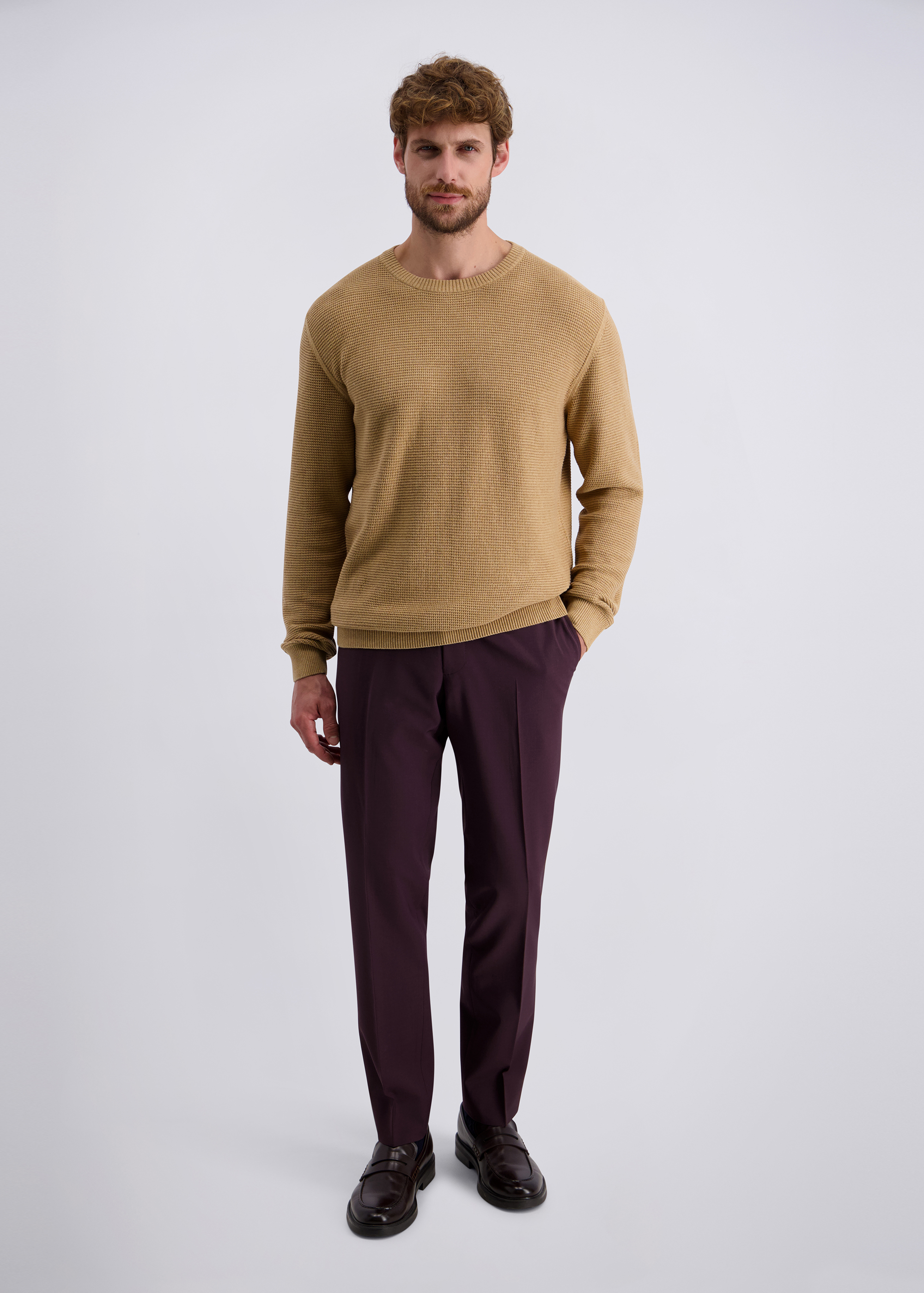 Dieser elegante Pullover vereint zeitloses Design mit hochwertiger Verarbeitung und verspricht einen stilvollen Auftritt zu jeder Gelegenheit. Gefertigt aus einer innovativer Baumwollmischung bietet er ein angenehmes Tragegefühl und sorgt durch seine weiche Textur für höchsten Komfort. Der klassische Rundhalsausschnitt und die gerippten Bündchen an Ärmeln und Saum unterstreichen die schlichte Eleganz dieses Modells und gewährleisten gleichzeitig eine optimale Passform. Die subtil strukturierte Oberfläche verleiht dem Pullover eine dezente Raffinesse und macht ihn zu einem vielseitigen Begleiter, der sowohl im Büro als auch in der Freizeit überzeugt. Ein unverzichtbares Basic, das in keiner gut sortierten Garderobe fehlen sollte.