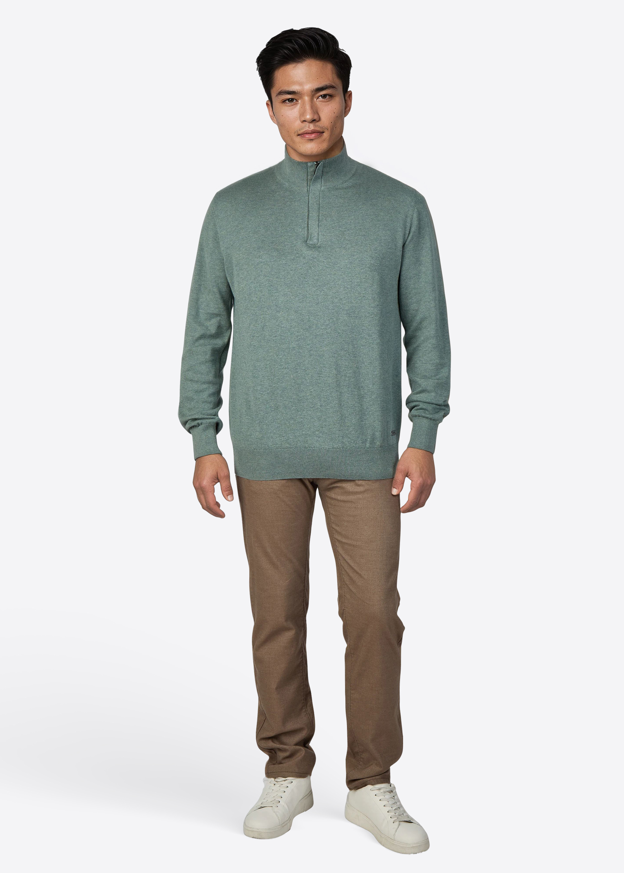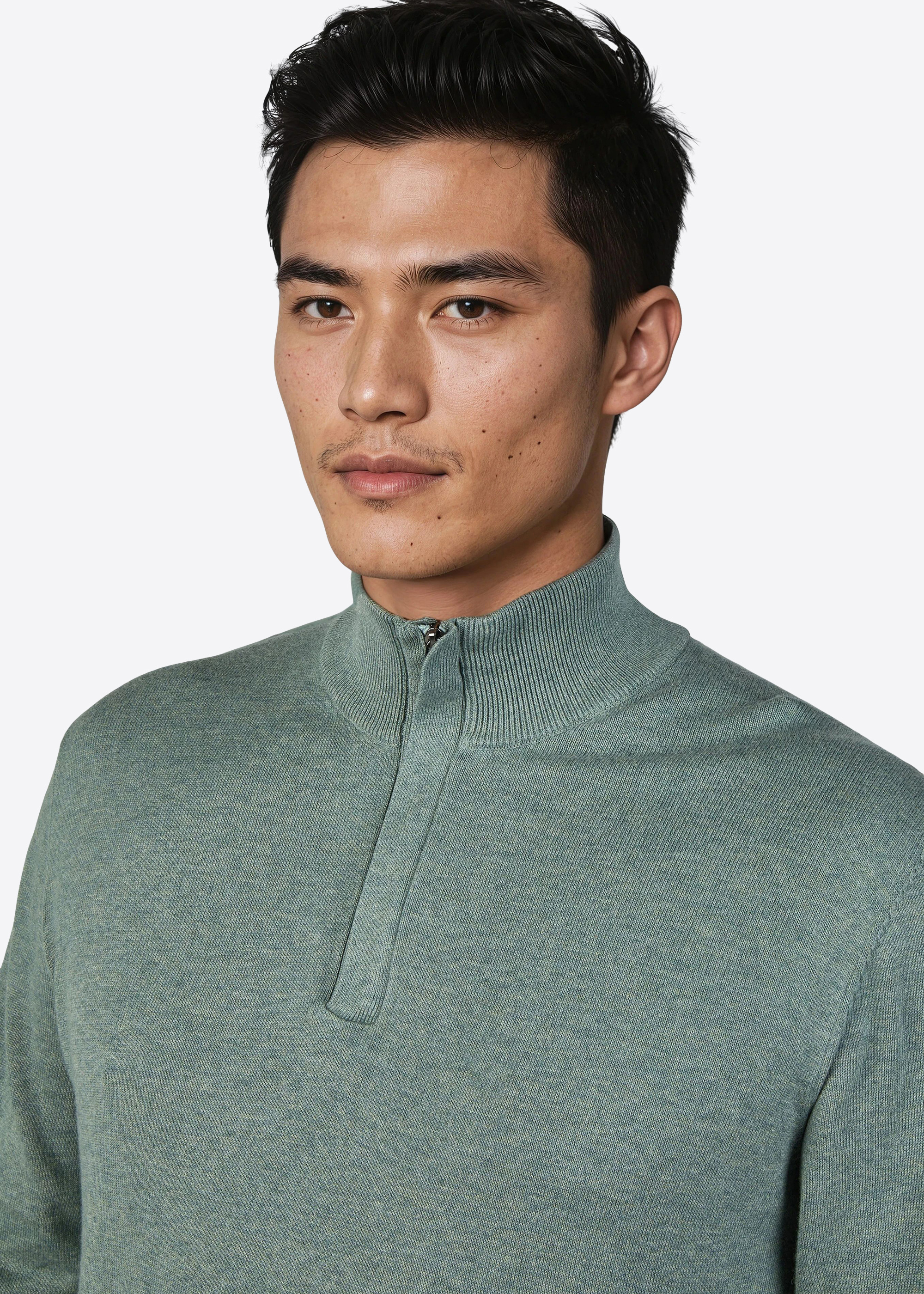 Strickpullover mit Stegkragen und aufwändiger Zip Verarbeitung