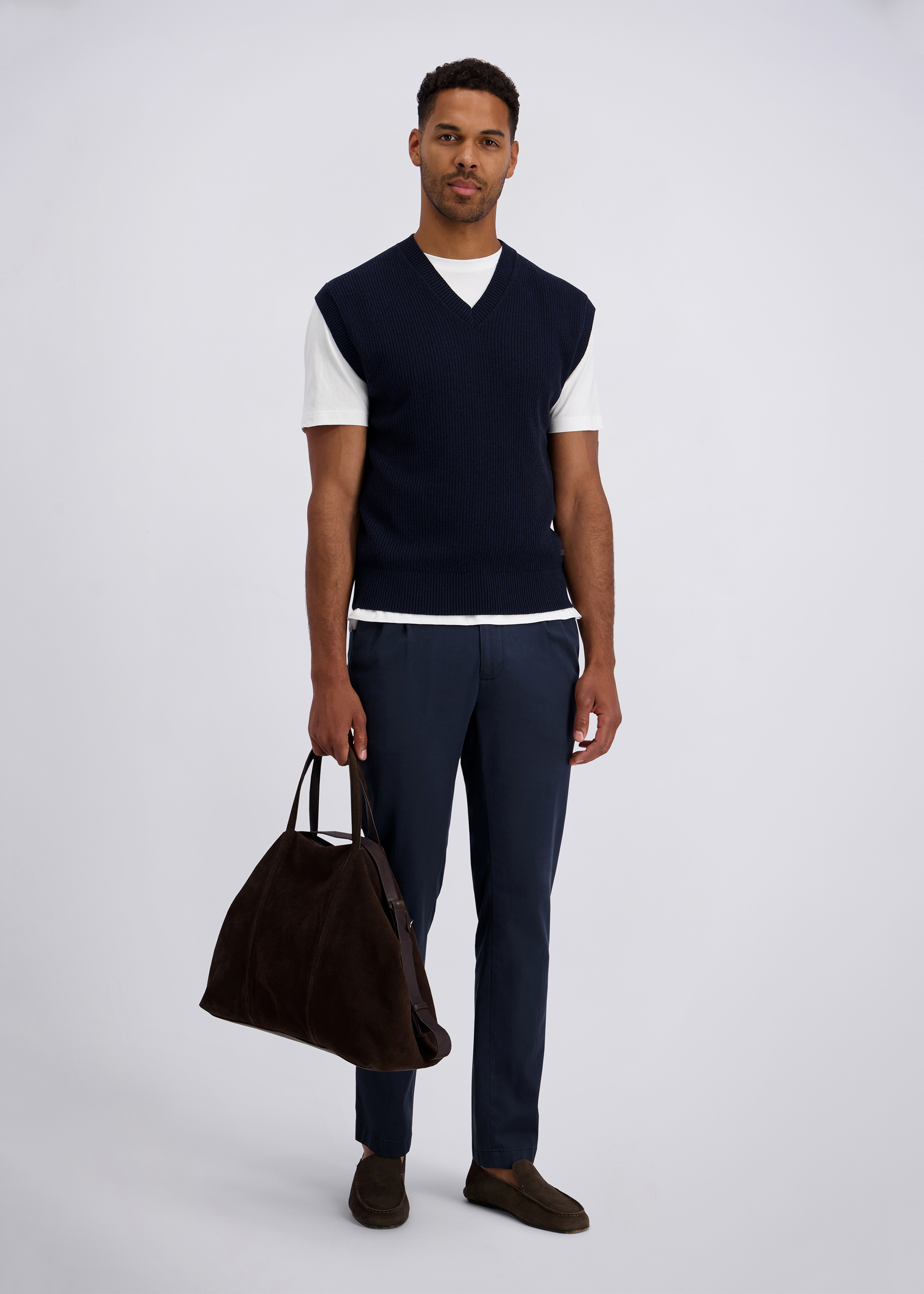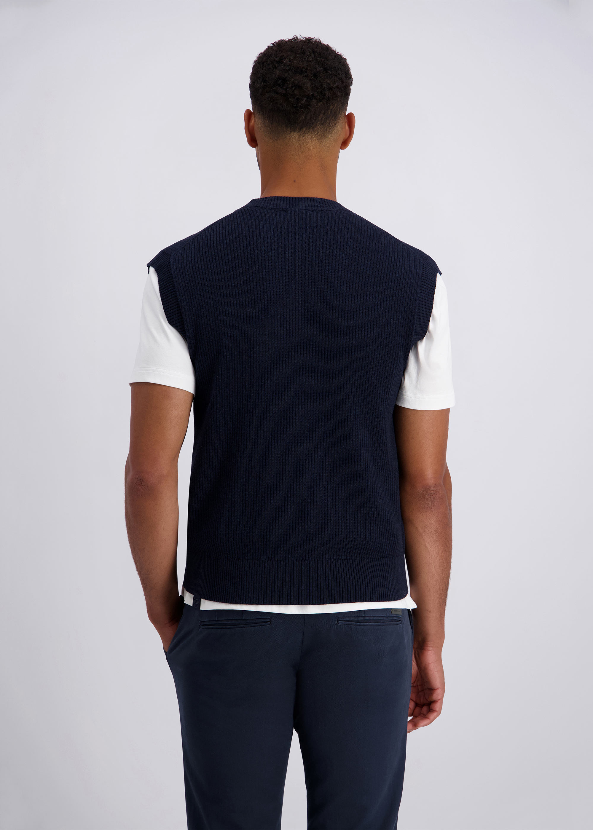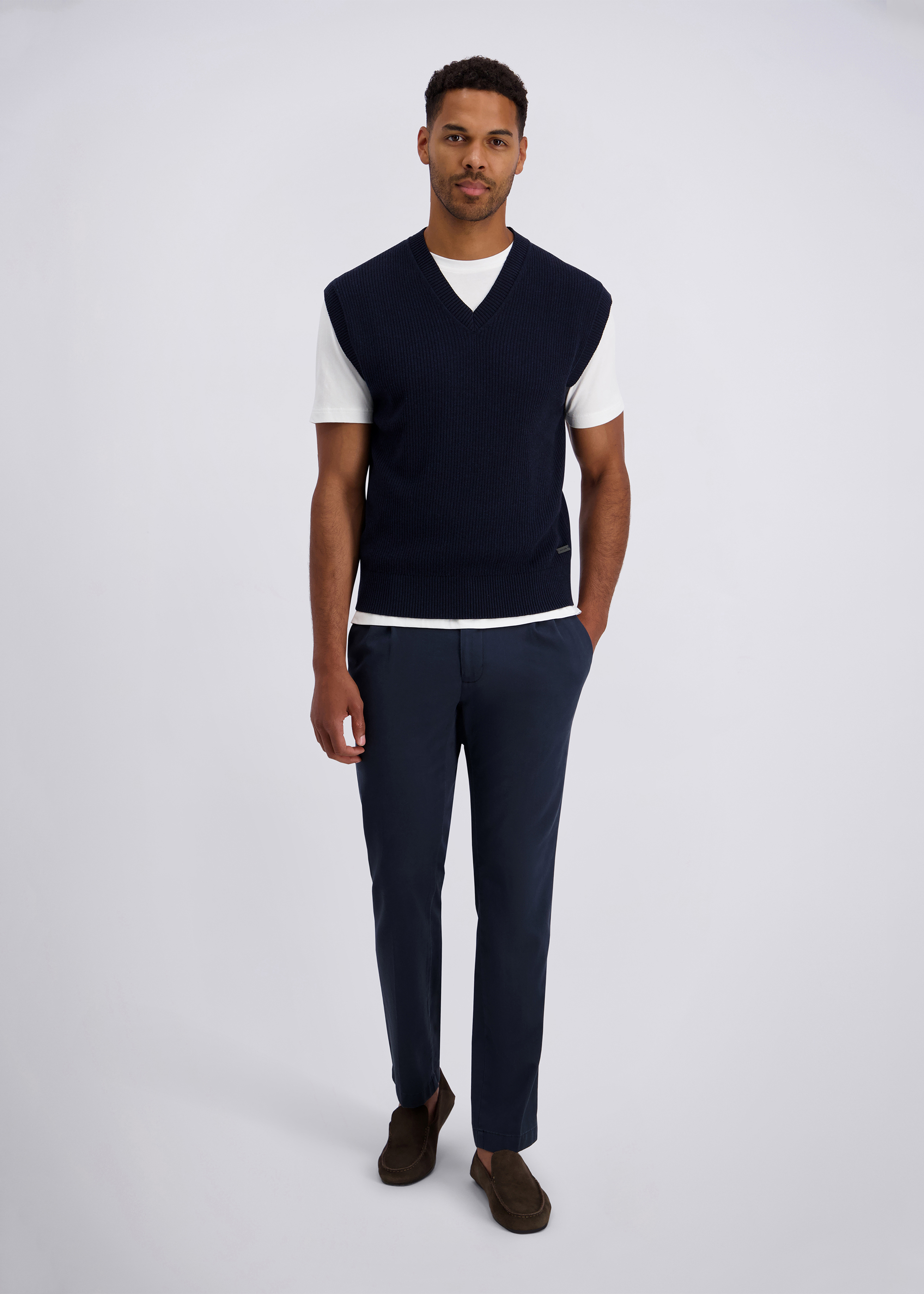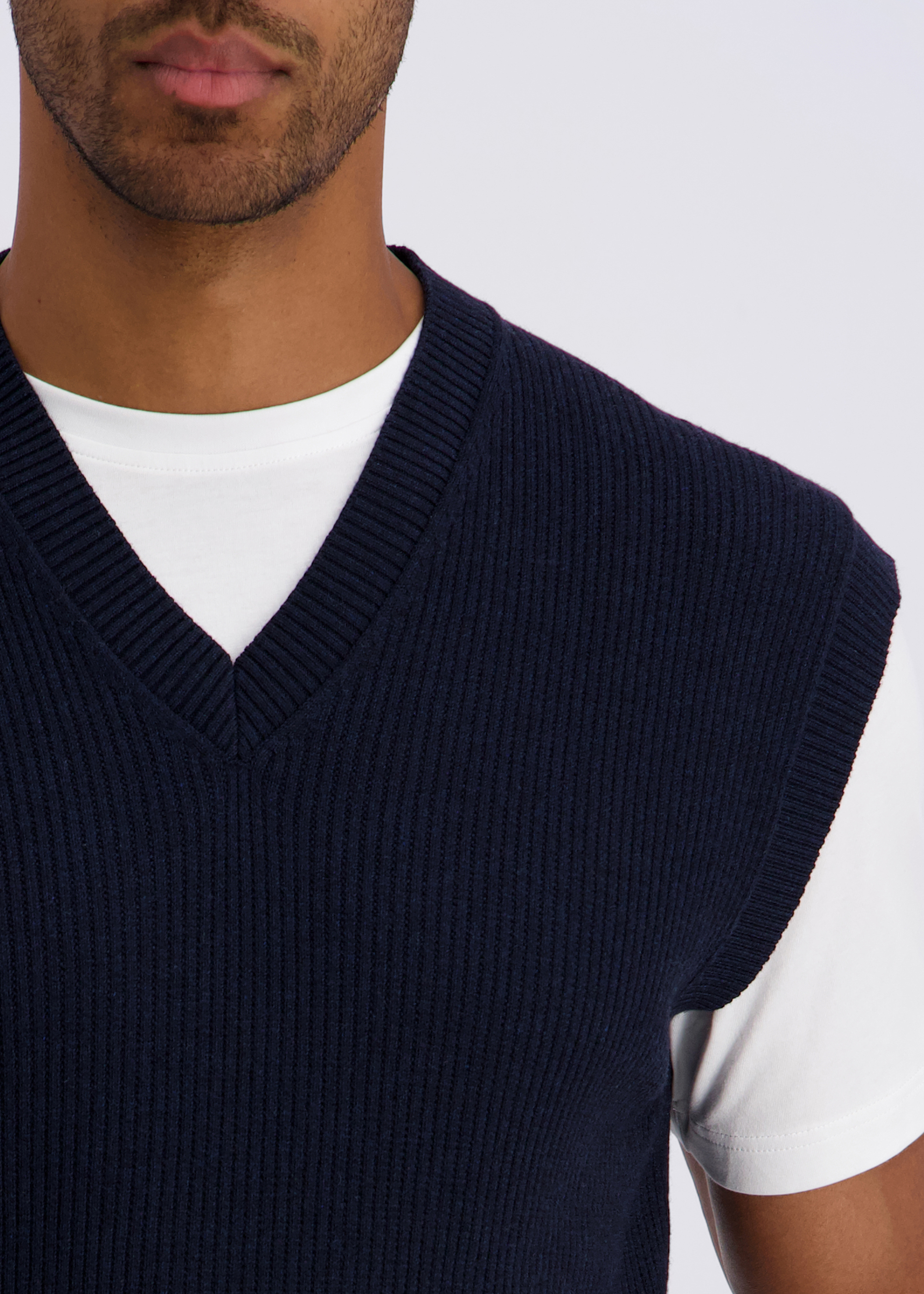 Dieser Strickpullunder im modernen Fit vereint zeitloses Design mit bequemem Tragekomfort. Der klassische V-Ausschnitt macht ihn vielseitig kombinierbar – ideal über Hemden oder unter Blazern für einen stilvollen Layering-Look. Feine Rippbündchen am Saum sorgen für eine perfekte Passform und verleihen dem Pullunder zusätzliche Formstabilität. Hergestellt aus einem weichen Baumwollmix, bietet das Modell ein angenehmes Tragegefühl und ist ein elegantes Essential für jede Garderobe.
